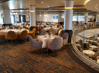 - Bufetová reštaurácia Windjammer Marketplace - Early Breakfast, raňajky, obed a večera. Asi o 1/5 väčšia v porovnaní s loďami Quantum-Class. Medziiným k dispozícii noodles, krájaná pizza, Teppanyaki a čínske hot pot jedlá.