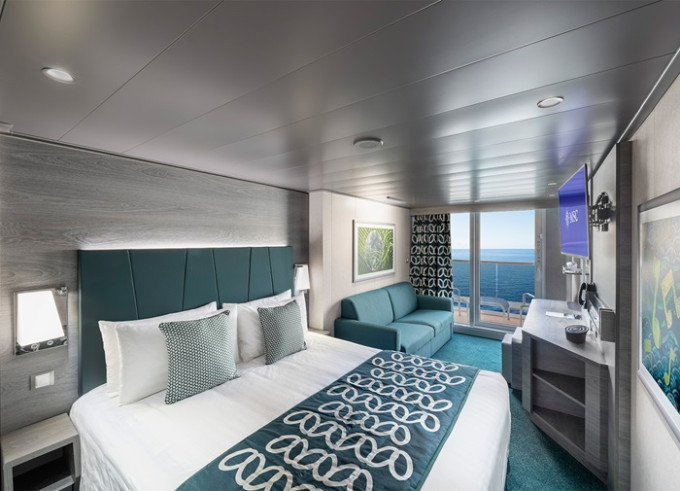 Balkónová kajuta: 19 - 22 m², kajuta s manželskou posteľou (na požiadanie 2 oddelené postele) a rozkladacia pohovka. Klimatizácia, kúpeľňa so sprchou alebo vaňou a WC, toaletný stolík, priestranná skriňa, interaktívna TV, telefón, trezor, sušič vlasov, virtuálna asistentka ZOE. Balkóny so stolíkom a stoličkami. Niektoré kajuty majú obmedzený výhľad.