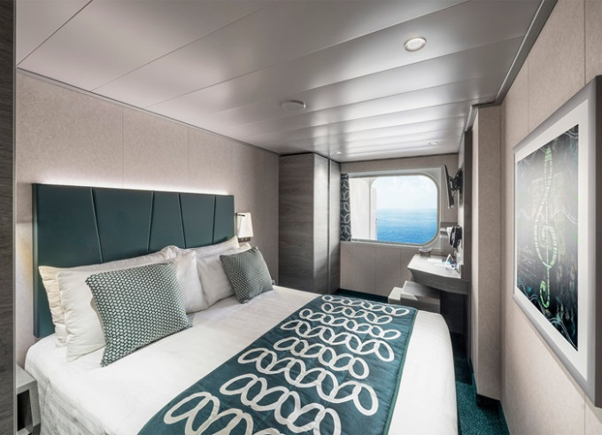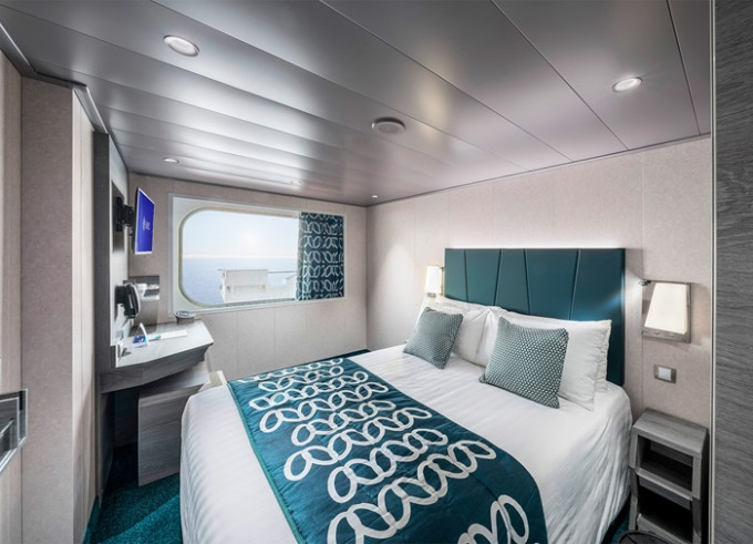 Vonkajšia kajuta s neotvárateľným oknom: 15 - 25 m², kajuta s manželskou posteľou (na požiadanie 2 oddelené postele) a 1-2 vyklápacie horné lôžka resp. rozkladacia pohovka. Klimatizácia, kúpeľňa so sprchou a WC, toaletný stolík, skriňa, interaktívna TV, trezor, telefón, sušič vlasov, virtuálna asistentka ZOE, neotvárateľné okno. Kajuty v kategórii Bella a niektoré Junior a Deluxe majú obmedzený výhľad.