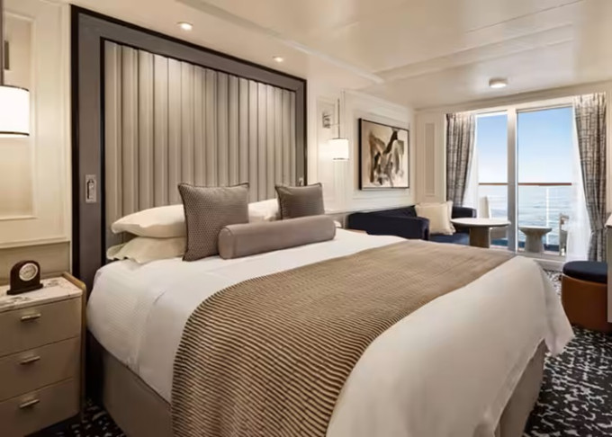 • Owner’s Suites: súkromný obed v apartmáne od 12:00 do 14:00 (voliteľné) v deň nalodenia
