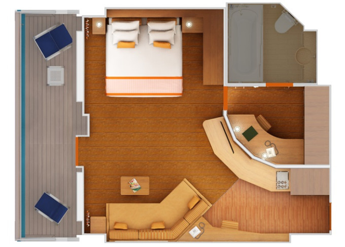 OS - Ocean Suite 25,5 m² + balkón 8 m². 5. až 8. paluba. Výhody Suite. 3 756 € 1 878 € za osobu