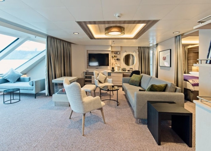 | ME - Expedition Suite s balkónom 20-28 m². Balkón. TV, minibar, varná kanvica, kávovar. 8,9. paluba. Max 4 osoby. Výhody Suite. | 19 058 € 9 529 € za osobu | ||