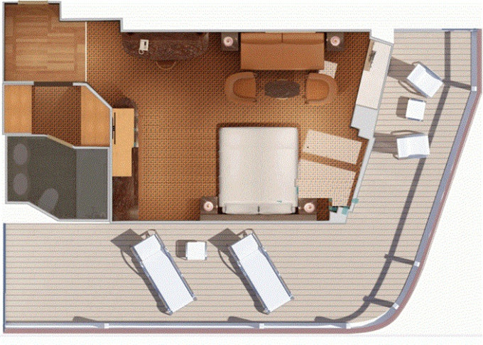 | GV - Grand Vista Suite cca 53 - 68 m² vrátane balkóna. 4. až 8. paluba. | 6 838 € 3 419 € za osobu | ||