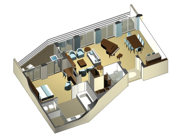 | CS - Celebrity Suite 37 m² + balkón 10 m². 9,11. paluba. Max 4 osoby. Výhody Suite. | 21 740 € 5 435 € za osobu |
