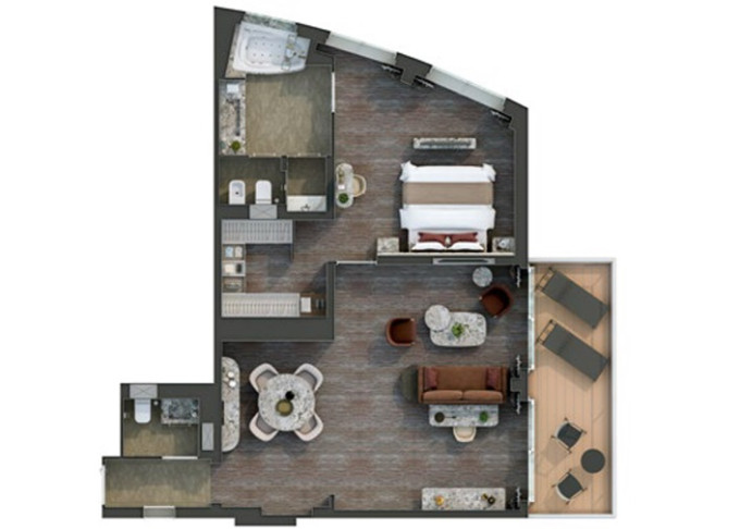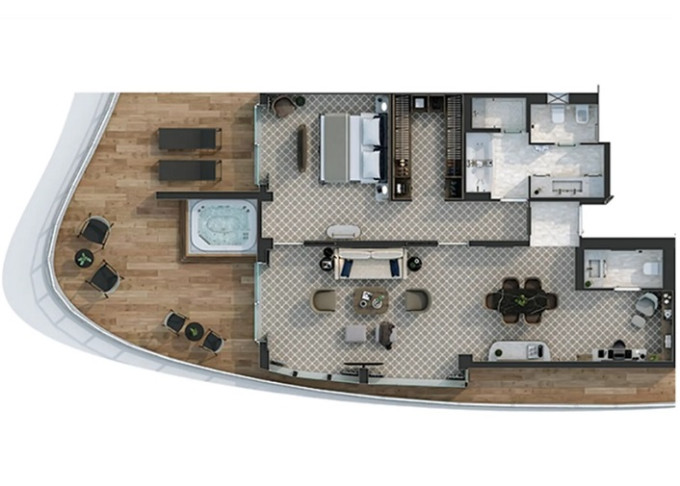 | O2 - Owner's 2 Suite 131 m² (vrátane balkóna 21 m²). Spálňa, oddelená obývacia a jedálenská časť, kúpeľňa s vírivkou. 8. paluba stred. Max 5 osôb. | 79 200 € 79 200 € za osobu |