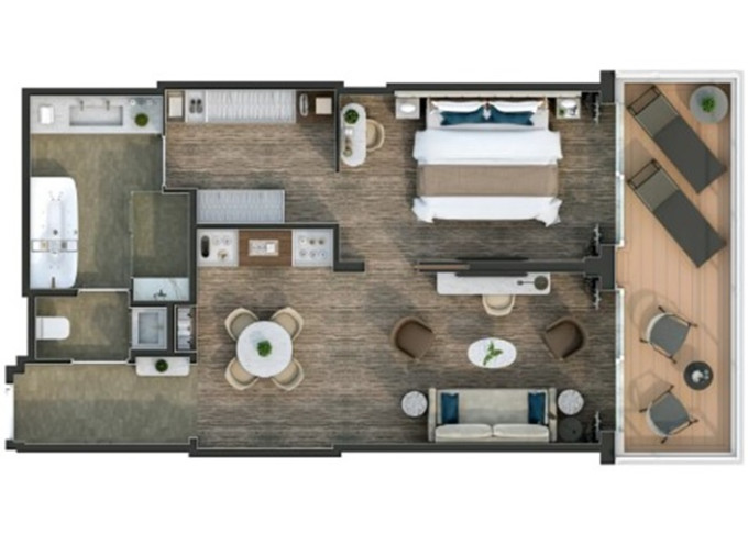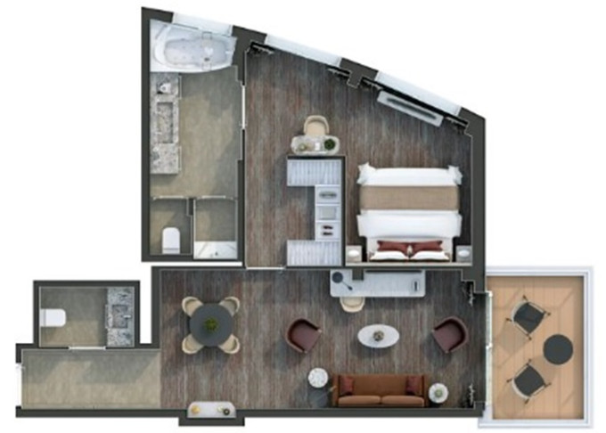 | MS - Master Suite 67-77 m² (vrátane terasy 22-32 m²), Spálňa, oddelená obývacia a jedálenská časť. 6. až 9. paluba vzadu. Max 3 osoby. | 46 400 € 23 200 € za osobu |