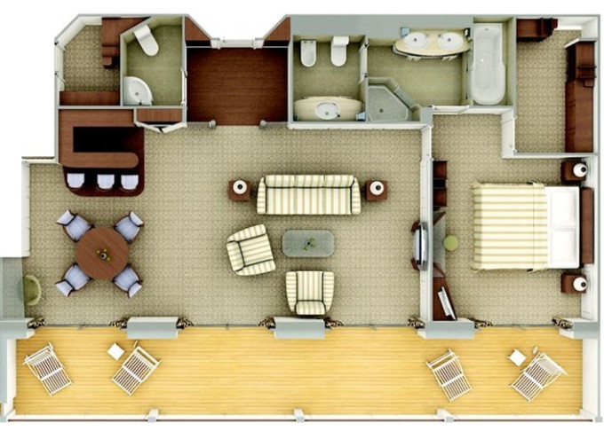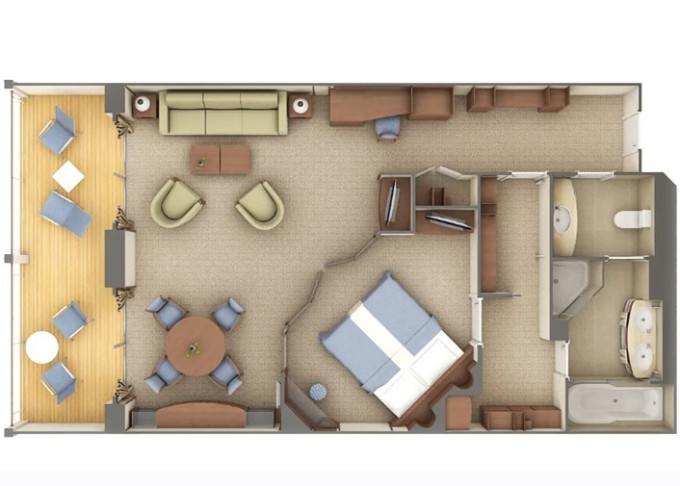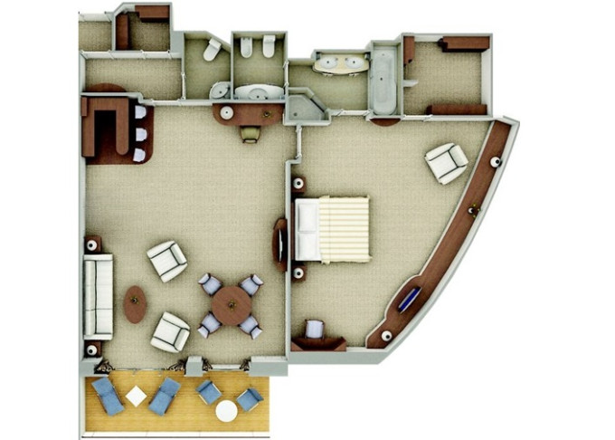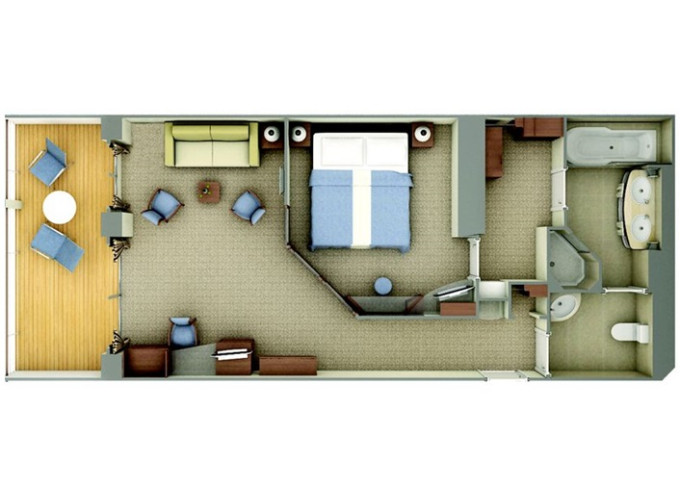 SV - Superior Veranda Suite 26 m² + 6 m² balkón.5. až 8. paluba. Max 3 osoby. 15 400 € 7 700 € za osobu