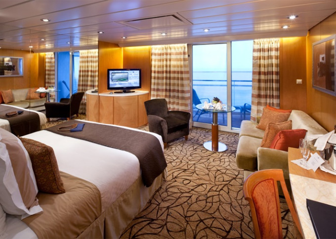 - Kajuty sú umiestnené v blízkosti lodného Spa. K ich vybaveniu patrí posilnený systém vzdušnej filtrácie, posteľ Queen-Size (v kategóriách Edge King-Size), veľké zasúvacie sklenené dvere, exkluzívne posteľné prádlo eXhale®, veľkorysé skladovacie priestory.
