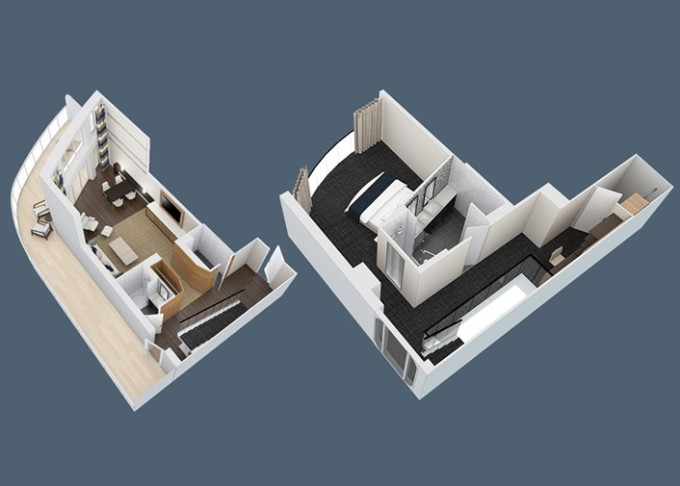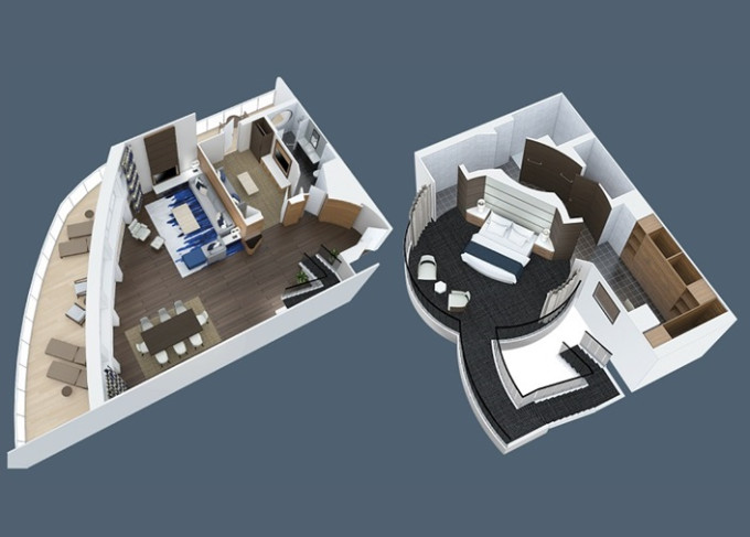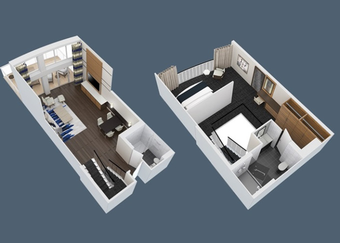OL - Owner Loft Suite s balkónom 90 m² + balkón 46 m². 2-podlažný apartmán. 8. paluba. Max 4 osoby. Výhody Royal Suite Star Class. 10 584 € 2 646 € za osobu