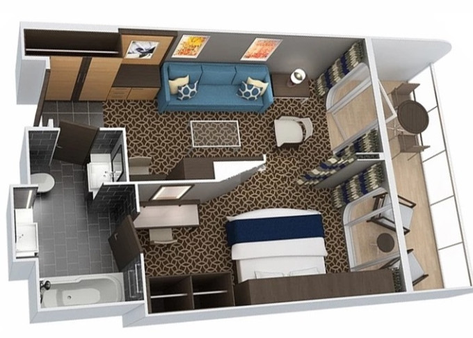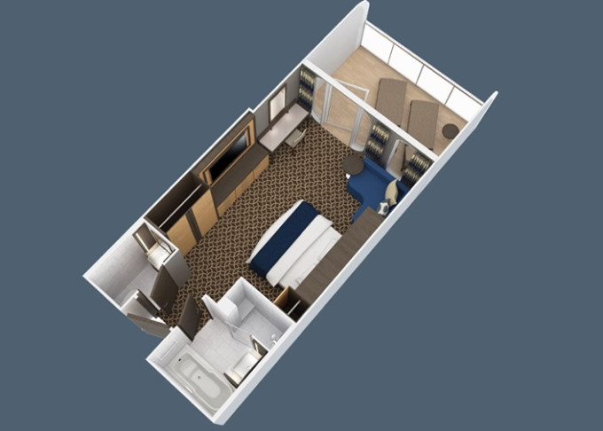 2F - Kajuta s balkónom Super Studio 11 m² + balkón 5 m². 6/7. paluba. Max 1 osoba. 2 083 € 2 083 € za osobu