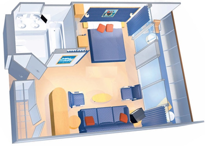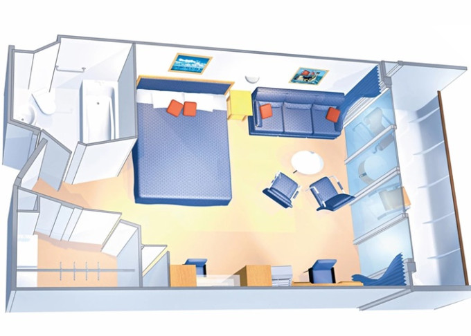 | J4 - Junior Suite s balkónom 26 m² + balkón 4,5 m² / niektoré kajuty majú obmedzený výhľad. Max 2 osoby. Výhody Junior Suite. | 3 129 € 1 043 € za osobu | ||