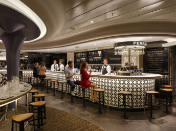 Terrazza Superba Bar na 7. palube na korme, benátsky Bacaro Bar, Bar Spazio Bollicine, Campari Spritz Bar, obľúbená zmrzlináreň - čokoládovňa Gellateria Amarillo.