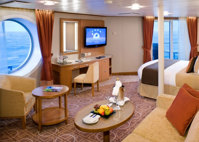 - Kajuty sú umiestnené v blízkosti lodného Spa. K ich vybaveniu patrí posilnený systém vzdušnej filtrácie, posteľ Queen-Size (v kategóriách Edge King-Size), veľké zasúvacie sklenené dvere, exkluzívne posteľné prádlo eXhale®, veľkorysé skladovacie priestory.