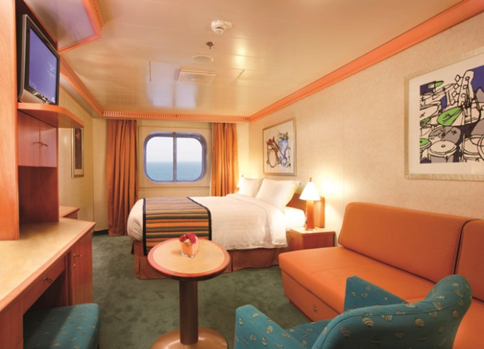 - Ubytovanie v kajute vybranej kategórie. Základné vybavenie: kúpeľňa s WC a sprchovacím kútom, 2 lôžka spojiteľné do manželskej postele, skrine, nočné stolíky, toaletný stolík a stolička, nastaviteľná klimatizácia, interaktívna satelitná TV s plochou obrazovkou, trezor, sušič na vlasy, uteráky a posteľné prádlo, Wi-Fi pripojenie (za poplatok), 24/7 kajutová služba (za poplatok).