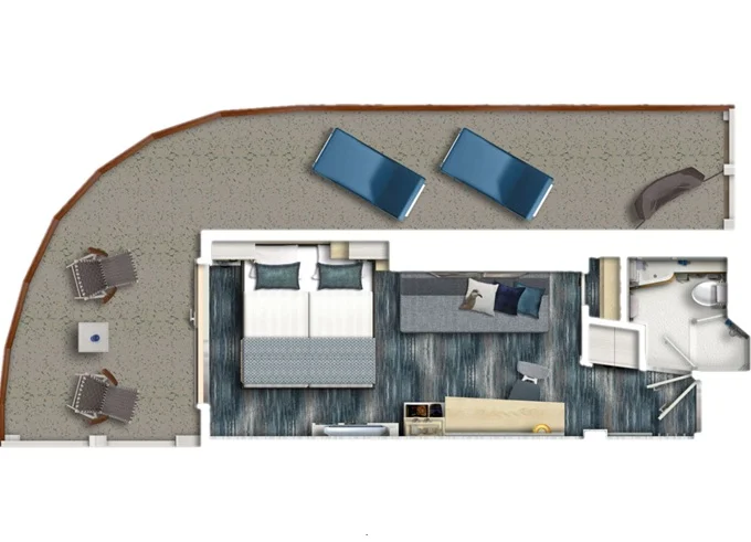 | SUTO - Themen Suite 54 m² + balkón 15 m² so stolom, ležadlom a hojdacou sieťou. Spálňa, obývacia časť, šatník. 10. paluba. Max 4 osoby. Výhody Suite. | 7 113 € 7 113 € za osobu |