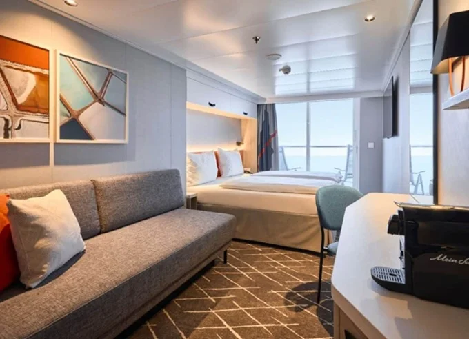 | SSAO - Schöne Aussicht Suite 39 m² + balkón 10-12 m² s ležadlami a hojdacou sieťou. 7-14. paluba. Max 4 osoby. Výhody Suite. | 9 398 € 4 699 € za osobu | ||
