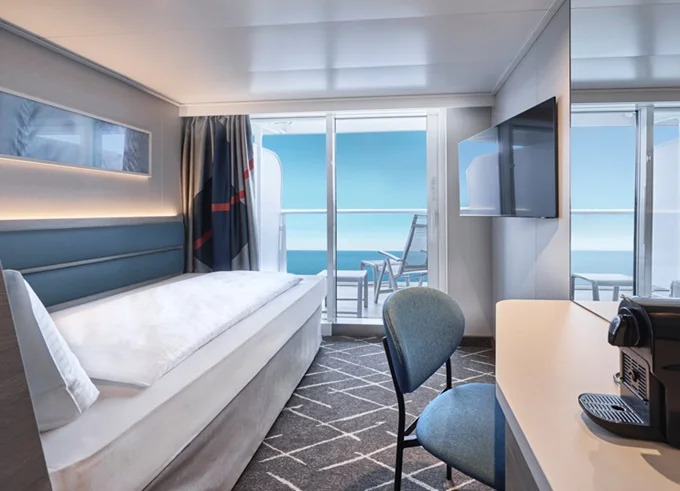 SSAO - Schöne Aussicht Suite 39 m² + balkón 10-12 m² s ležadlami a hojdacou sieťou. 7-14. paluba. Max 4 osoby. Výhody Suite. 5 998 € 2 999 € za osobu