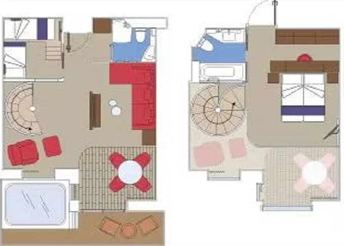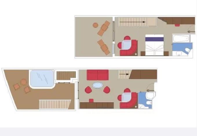 | YJD - Yacht Club Duplex Suite s vírivkou 46 m² + balkón 28-31 m². Vírivka. 2 podlažia, šatník, 2 kúpeľne (1 s vaňou). Max 4 osoby. 16. paluba. Cenový model MSC Yacht Club. Early booking drinks | 10 644 € 5 322 € za osobu | ||
