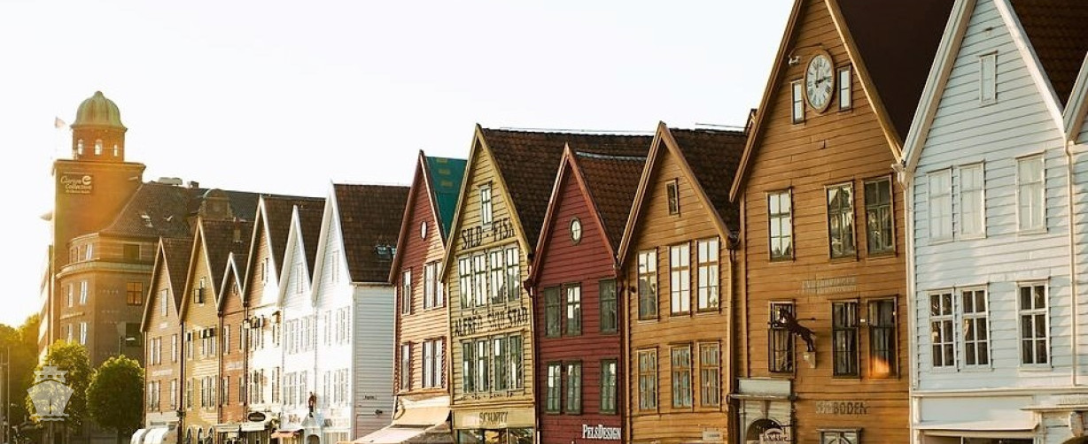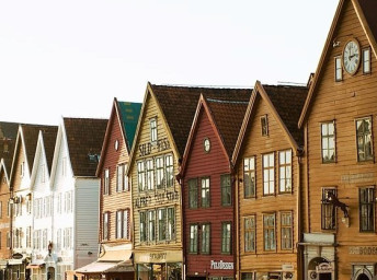 Bryggen / Tyskebryggen (Svetové Dedičstvo UNESCO). Historická časť mesta s históriou siahajúcou do 11. storočia. Farebné drevené hanzovné domy s typickými vysokými štítmi. Kedysi obydlia rybárov a sklady, dnes sa v nich nachádzajú obchodíky so suvenírmi, galérie umenia a reštaurácie.  Vzdialenosť od prístavu: 500 m