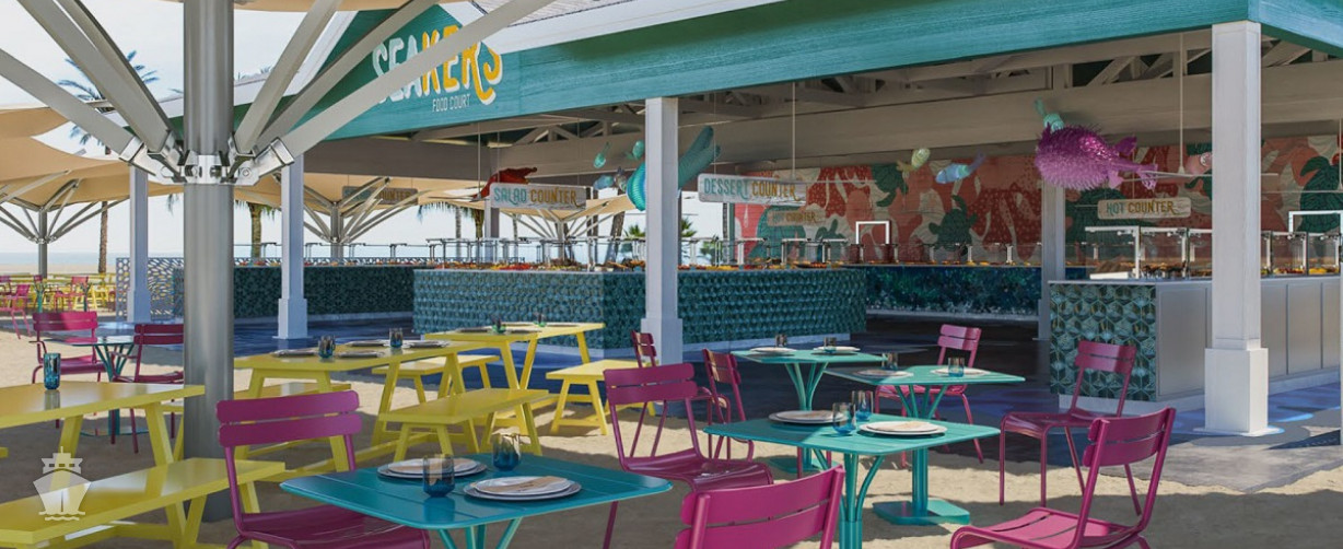 Stravovanie: bufetová reštaurácia (bez príplatku), mobilné Food Trucks, kaviareň a zmrzlináreň; plus reštaurácie na lodi ostávajú otvorené